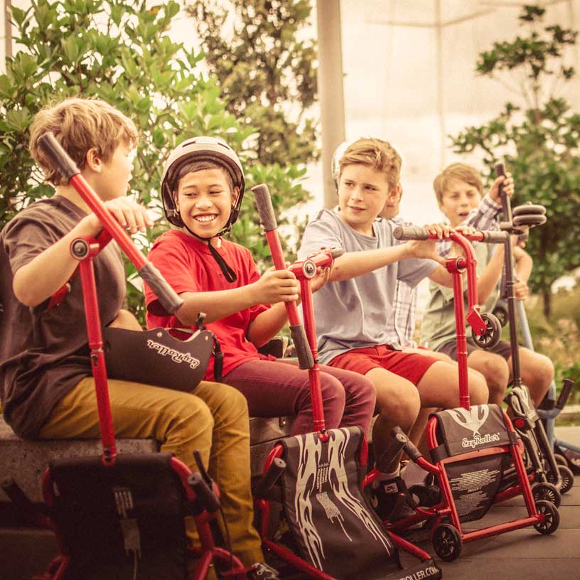 Eventually we arrived at what would become our flagship product, the Ezyroller Classic. The kids immediately loved it – it was tough and sturdy, it was racy, and it glided along beautifully. It was also extendable, meaning the kids could keep rolling with it as they grew. But best of all, we noticed all the cool, inventive play going on - the kids would be racing, chasing or towing each other, chalking the pavement, throwing each other balls, even jousting with their plastic swords!